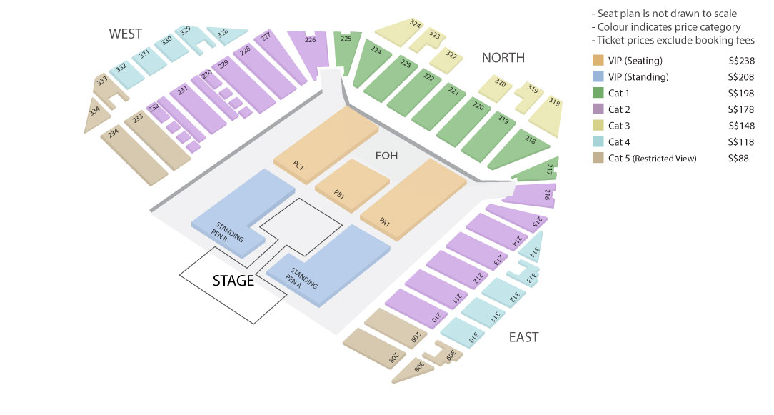 - Ticket Pricing excludes Booking Fee. Booking Fee is as follows: