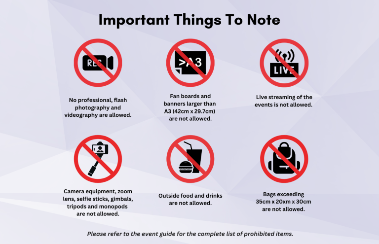 - Patrons with prohibited items such as vapes and professional camera will be denied entry.