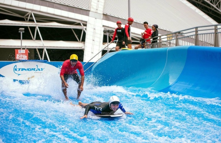 What: Stingray ® is a half-pipe surfing facility within Splash-N-Surf. There, you can have a go at bodyboarding or skimboarding on an artificial wave pool.