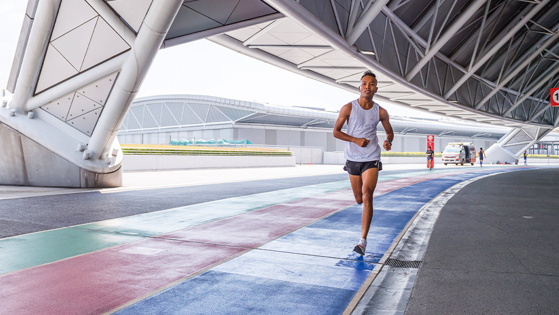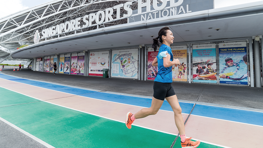 The Promenade at National Stadium is Singapore's largest, fully sheltered civic space. It features an 888 metres sports and recreational space around the National Stadium.
