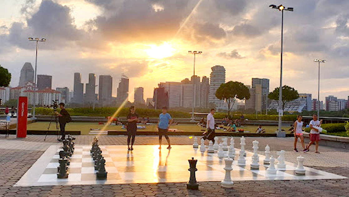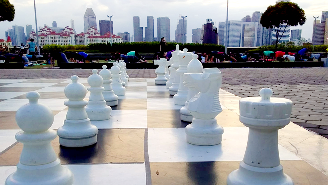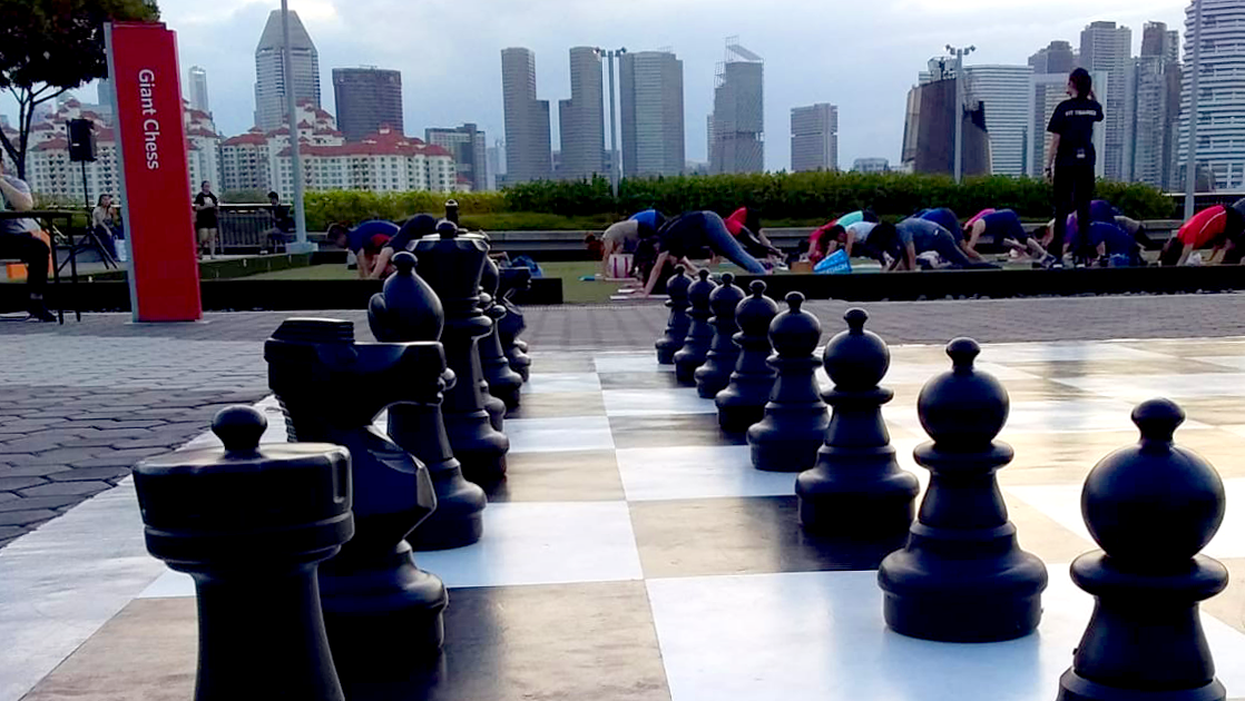 This cerebral game takes on an entirely new physical dimension. You’ll have clocked a few hundred more steps by the time you say “checkmate”.