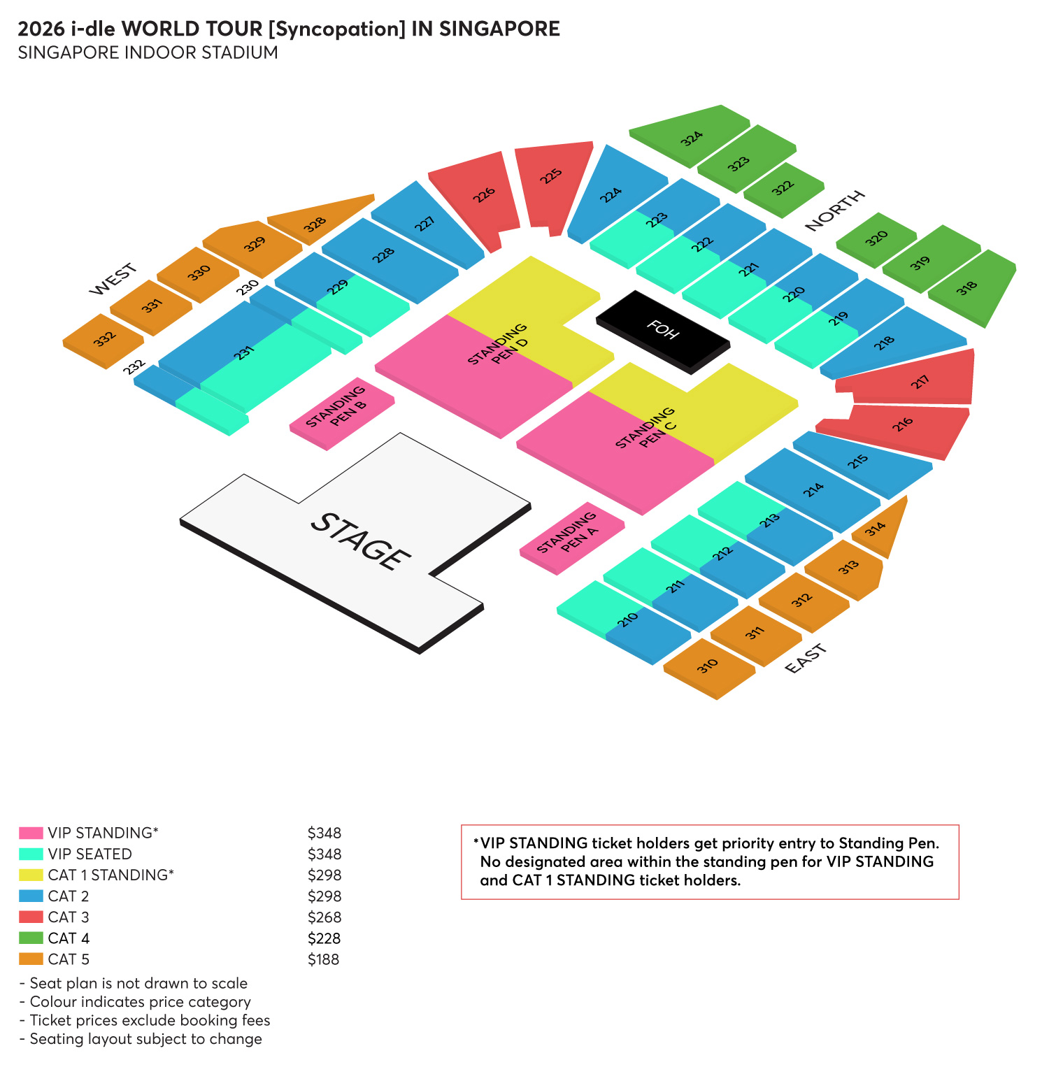 2026 i-dle WORLD TOUR [Syncopation] IN SINGAPORE” is organised by iMe Singapore and will be held at Singapore Indoor Stadium on 13 June 2026 (Saturday) at 5pm! Tickets are priced from $188 to $348.