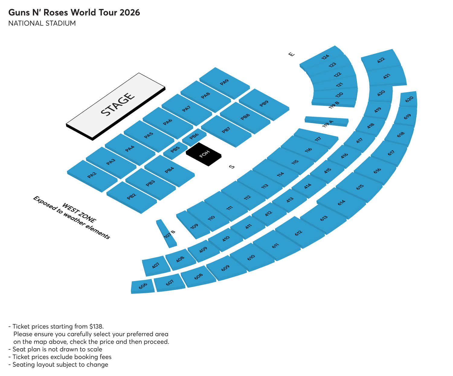 - Ticket Pricing excludes Booking Fee. Booking Fee is as follows: