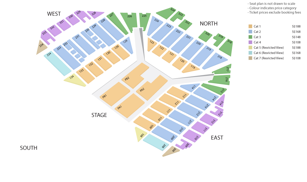 - Ticket Pricing excludes Booking Fee. Booking Fee is as follows: