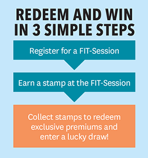 What’s more, complete the FIT-Sessions Rewards Card with just 35 stamps to receive an exclusive limited-edition T-shirt*, and enter a lucky draw for a chance to win prizes like tickets to a Sports Hub ticketed event, New Balance Performance Footwear and a 30-day pass to Sports Hub Gym or Fitness class.