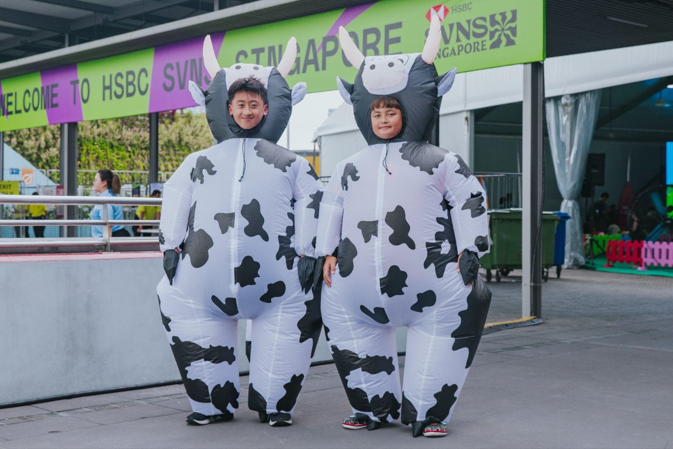 From Pizzas to Bananas (we mean costumes here) fans, from all over the world, were cheering, singing and dancing as one community, bringing the stands to life and adding to the atmosphere for players. Flags, posters and wacky dress ups covered the stands as they enjoyed games, fringe activities and entertainment while the HSBC SVNS Singapore 2026 ambassadors, Ruby Tui, Nathan Hirayama and Jerry Tuwai surprised and delighted screaming fans. Kids had the chance to meet their favourite characters from LITTLE PONY, Peppa & George Pig, as well as the leader of the Autobots - Optimus Prime, while teens could go on Mandai’s Ranger Buddies missions, try a game of tag rugby or plug in at the PS5 gaming stations. No fan could go hungry with delicious bites from Meatsmith and Burnt Ends Bakery while cooling off with refreshing drinks at the Beach Club.