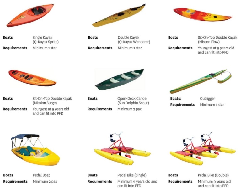 Advancing now as Singapore’s premier water sports facility for families, members of the public will have access to a total of 66 watercraft, including the new inventory of pedal-craft (pedal boats and pedal bikes), which patrons can hire at the Water Sports Centre, within the Marina Reservoir (please see Appendix A for the full list of watercraft offerings).