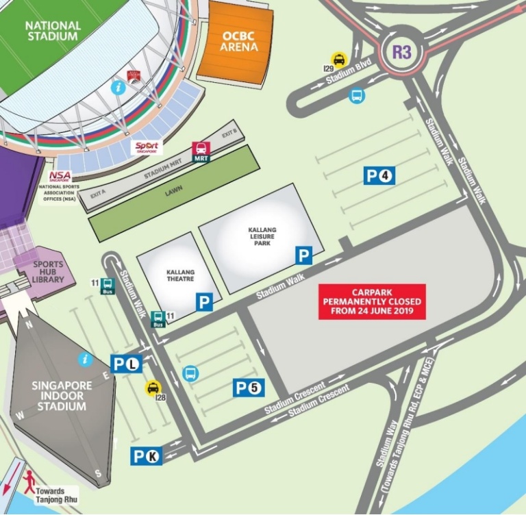 A section of Carpark 5 at Leisure Park Kallang is permanently closed with effect from 24 June 2019, (Map of carpark in Annex C). Patrons are encouraged to leave their cars at home and take public transport via bus or MRT to the matches.
