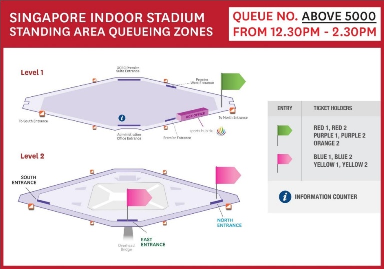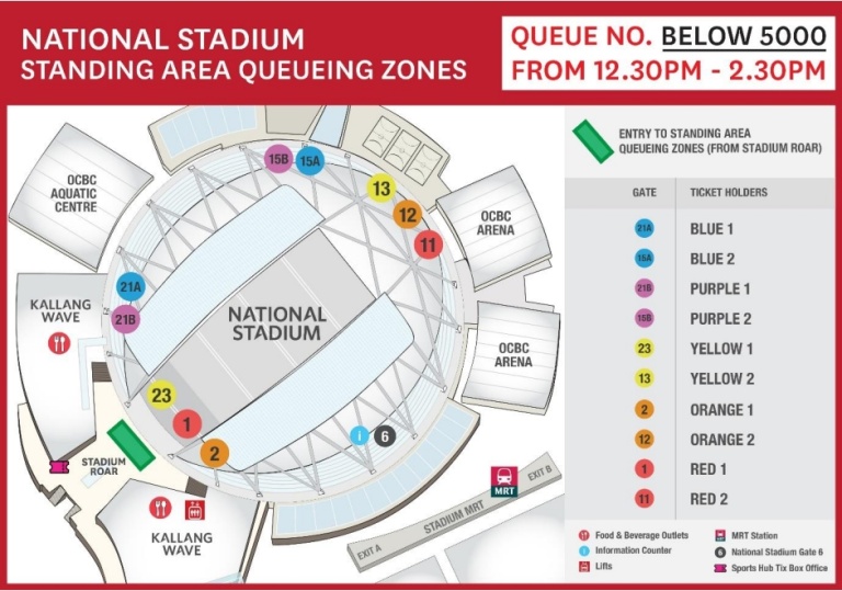 For ease of entry into our venue, we recommend that patrons check the gate numbers on their tickets before coming to the Singapore Sports Hub and proceed to the nearest security checkpoint (see tables below).