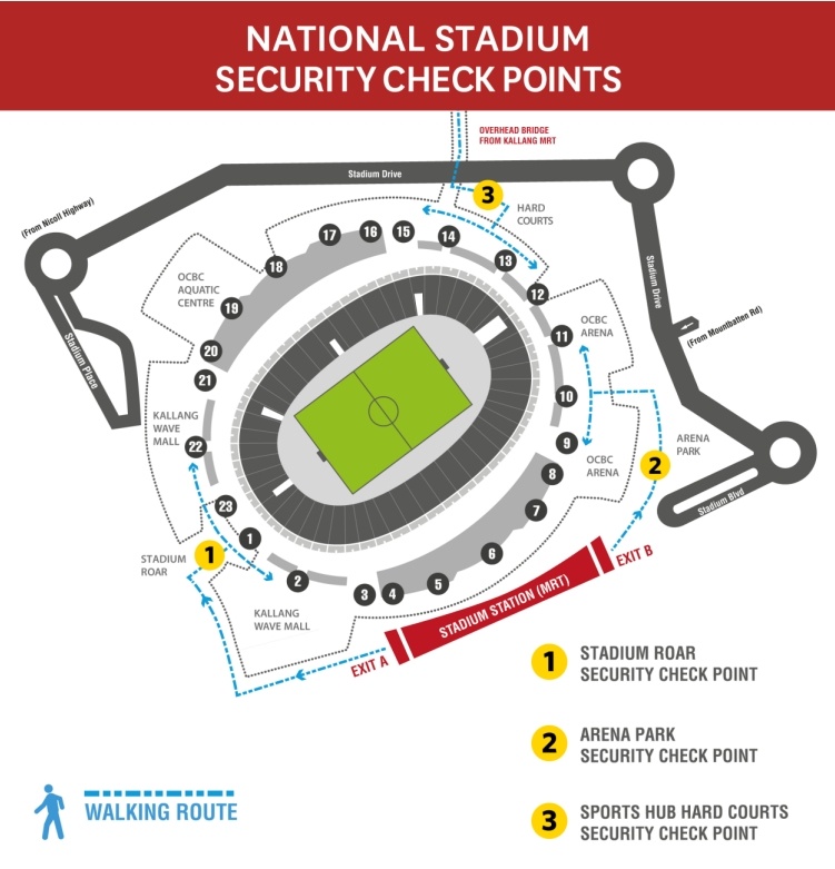 Singapore Sports Hub reserves the right to refuse entry to any person who does not comply with security check requests. The full conditions of entry for events at the National Stadium can be found here: https://mediabank.sportshub.com.sg/documents/Conditions-of-Entry/NST-COE.pdf.