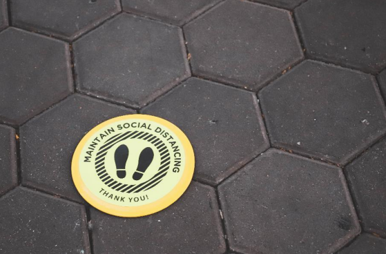 [Floor markers placed around community programmes venues to remind patrons to maintain a safe distance with each other at all times]