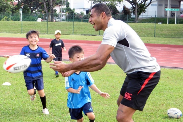 “The rugby coaching clinic was very fun! It’s my first time playing rugby with famous players and I really enjoyed myself,” said 6-year-old Jum Pei Negishi.
